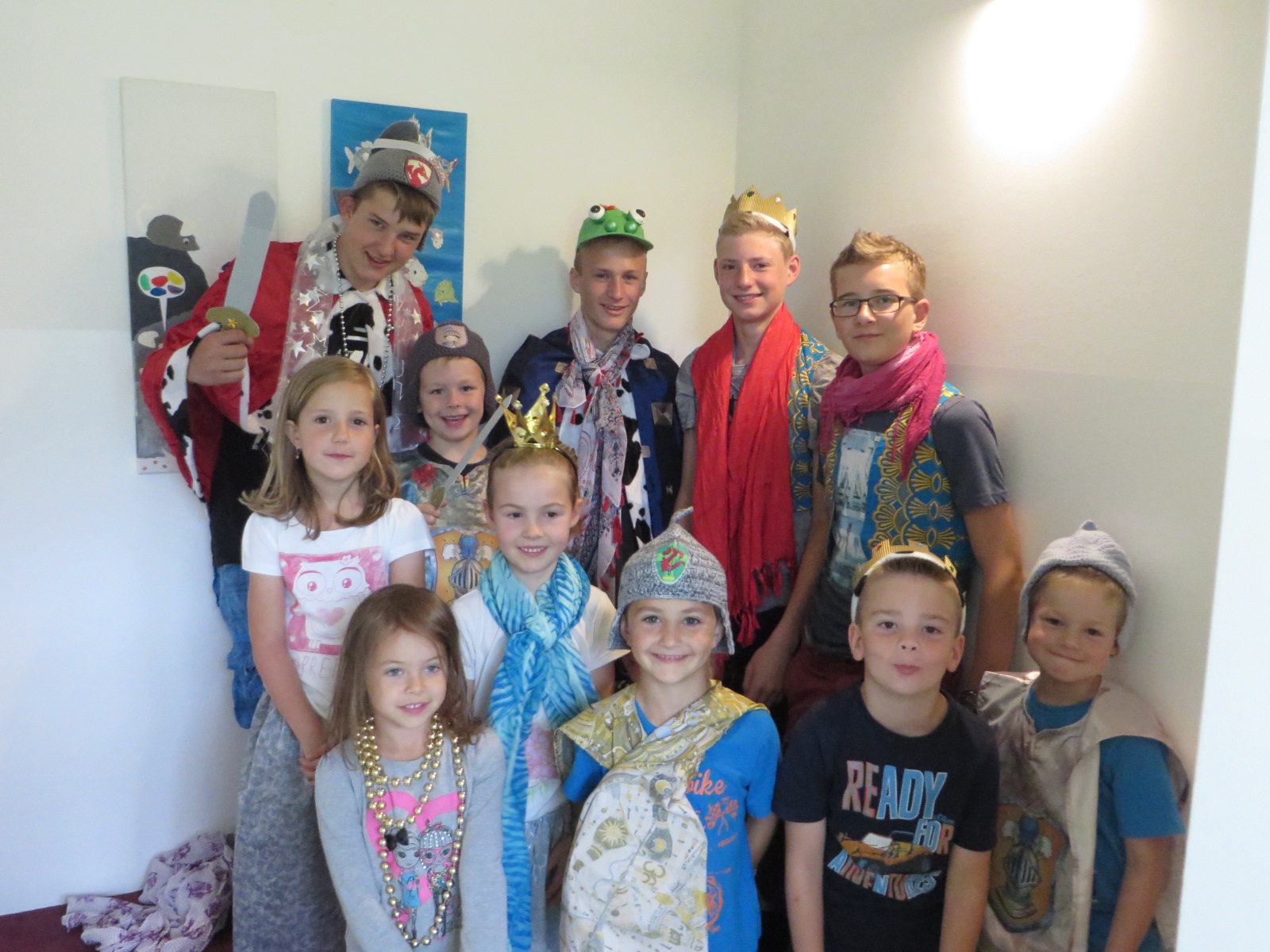 Während die Mädchen der 4. Klasse einen "Technik-Tag" am AMS in Scheibbs verbrachten, gingen die Burschen in den Kindergarten. Jedem Schüler wurden zu Beginn 2-3 KIGA-Vorschulkinder zugeteilt, um die er sich kümmern musste. Es wurde gemeinsam gespielt und als Highlight verkleideten die Kleinen die Großen (siehe Foto).