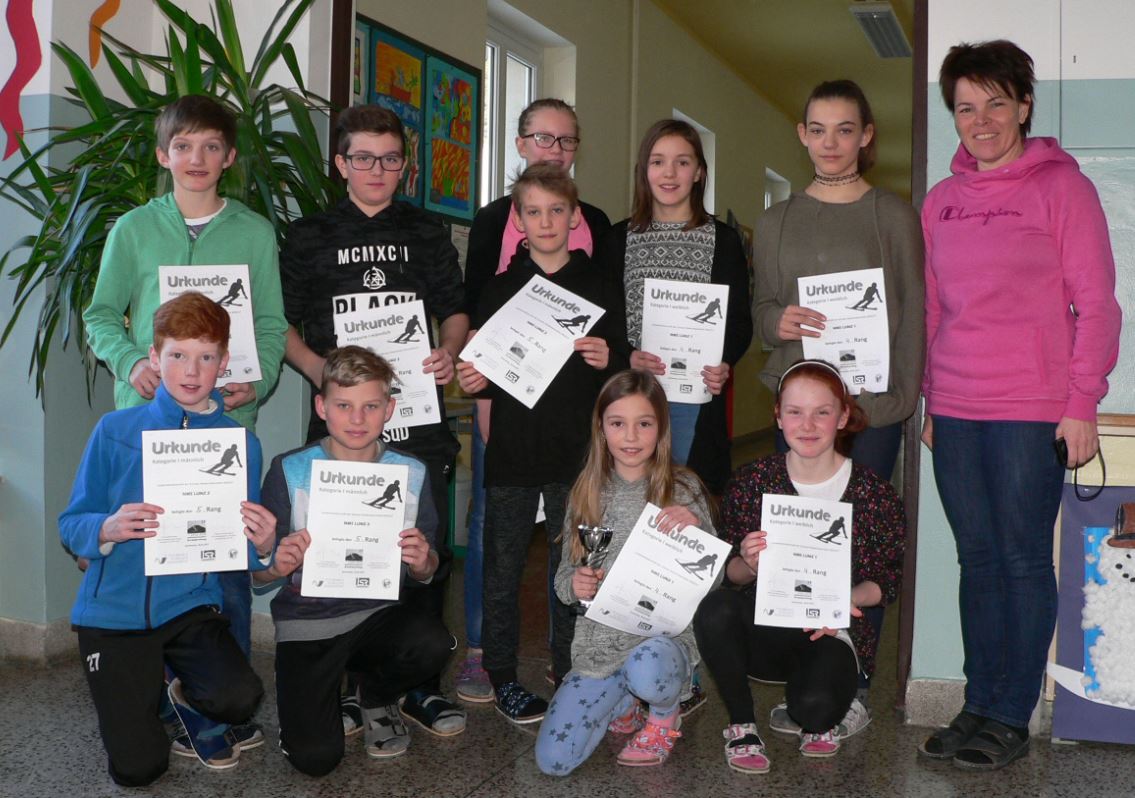 10 Schülerinnen und Schüler (Lara, Florentina, Lea, Claudia, Marina, Max, Josef, Sebastian, Tobias und Lukas) der NMS nahmen, betreut von Frau Simetzberger, am 26. Jänner an der LM der Schulen Niederösterreichs teil. Unsere Schüler zeigten auf der besonders anspruchsvollen Weltcuppiste ihr Können. Lara wurde bei den Mädchen Unterstufe 5. in der Einzelwertung und war das schnellste Mädchen der 5. Schulstufe. Sebastian wurde bei den Burschen Unterstufe 3. in der Einzelwertung. Florentina, 9. Platz Lea, 25. Platz Tobias, 22. Platz (mit Steher) Josef, 34. Platz (mit Steher) Lukas, 46. Platz Nach guter Fahrt leider ausgeschieden sind Marina, Claudia und Max. In der Mannschaftswertung belegten die Mädchen den 4. Platz und die Burschen den 5. Platz. Danke an die Betreuer des WSV Lunz (Heinz Seis, Markus Hudler, Heinz Prüller, Hermann Hudler und Martin Simetzberger) für den Transport und ihren Einsatz.