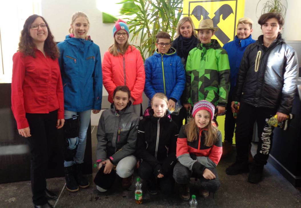 Am Montag, den 30. 1. erkundete die 3. Klasse mit ihrem KV und BO-Koordinatorin Frau Bachler im Rahmen des BO-Unterrichts die ortsansässige Raiffeisenbank. Nach einer Begrüßung durch den Bankstellenleiter Herrn Thomas Helmel gabs eine kurze PowerPoint-Präsentation über die Bank. Danach konnten die SchülerInnen Fragen stellen, bevor sie in 2 Gruppen (begleitet von Frau Sattler und Frau Trsek) die verschiedenen Bereiche der Bank ansehen durften. Der Bankomat, der Münzzähler, der Kontoauszugsdrucker – alles konnte ausprobiert werden. Ein Blick auf den Dachboden war genauso möglich wie ein Blick in den Tresor. Die Schüler durften Fremdwährungsscheine und –münzen, Münzrollen, Goldmünzen und Mini-Goldbarren ansehen bzw. angreifen! Ein Schätzspiel mit Preisen für die besten 3 und eine gute Jause bildeten den Abschluss des interessanten Vormittags – DANKE an die gesamte Belegschaft, die uns wie immer sehr nett empfangen hat.