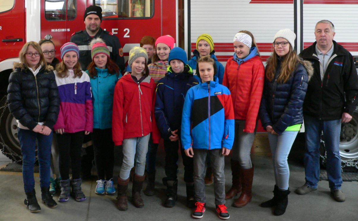 Am 24.2.2017 besuchte die 2. Klasse mit ihrer Physiklehrerin Frau Schneckenleitner die Feuerwehr. Herr Böck, Herr Simetzberger und Herr Sollböck zeigten den Kindern, wie ein Flaschenzug funktioniert. Zuerst durften die Kinder selbst ausprobieren, wie ein Flaschenzug das Hochheben schwerer Lasten erleichtert, danach konnten sich einige SchülerInnen selbst hochziehen lassen. Anschließend zeigten die Feuerwehrmänner den Kindern wie ein Einsatzfahrzeug aussieht.