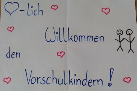 Mit diesem Plakat wurden unsere kleinen Gäste an der Eingangstüre begrüßt: Alle waren mit Feuereifer dabei! |