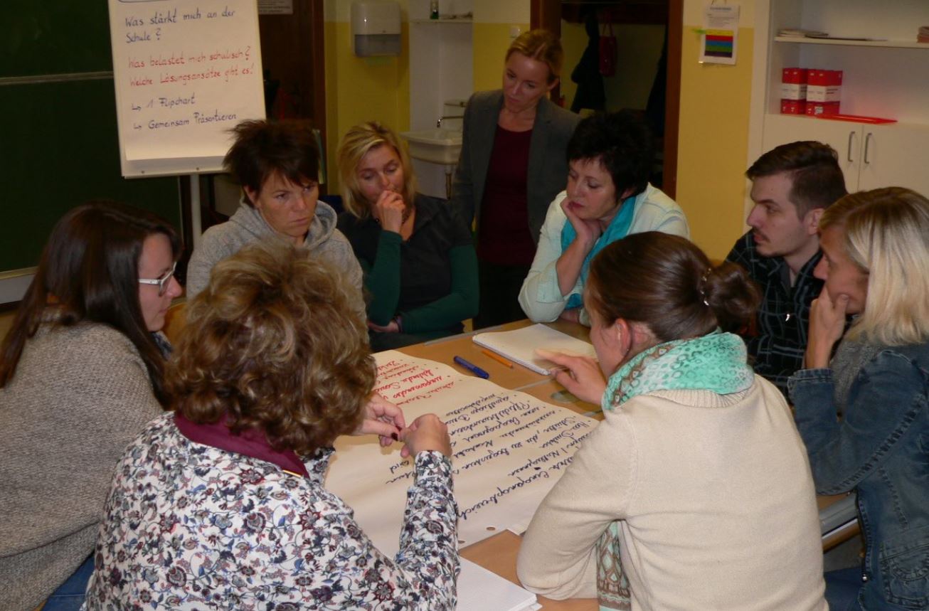 Im Vorfeld fand im vergangenen Schuljahr (2015/16) bereits eine Konferenz und ein Kerngruppentreffen mit unserer Beraterin Frau Zacharias-Köberl statt. Dabei wurde eine IST-Analyse vorgenommen bzw. Ideen und erste Umsetzungspläne besprochen.