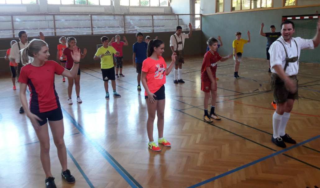Am Montag, den 2. Okt. 2017 stellten sich wieder einige Mitglieder der Volktanz- bzw. Schuhplattlergruppe zur Verfügung, um unseren Schülern der 3. und 4. Klasse dieses Brauchtum näher zu bringen. Natürlich auch ein wenig mit dem Hintergedanken, neue Mitglieder für die nächsten Jahre zu werben. Den Schülern machte es sichtlich Spaß und sie stellten auch schnell fest, dass Kondition und Koordination fürs „Schuhplatteln“ unbedingt notwendig sind. Danke an die Volkstänzer für diese interessante Bewegungserfahrung! |