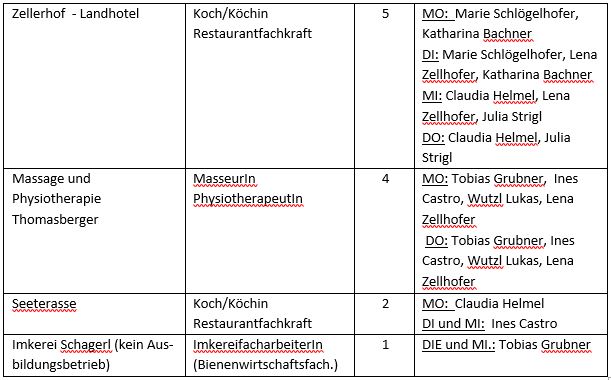 Ein großes DANKESCHÖN an die teilnehmenden Betriebe, auch an jene, die heuer aufgrund der geringen Schülerzahl nicht ausgewählt wurden.