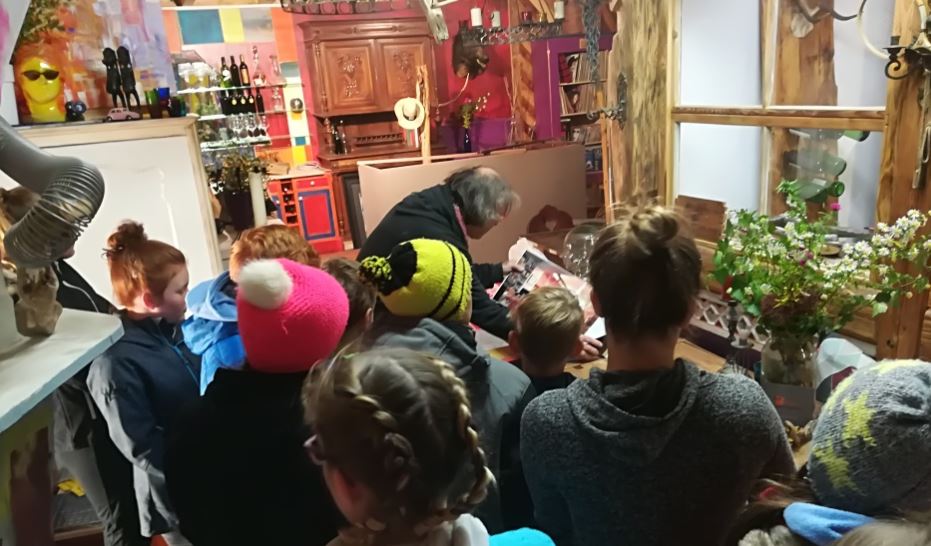 Herr Hochrieser bei der Arbeit mit Schülerinnen und Schülern der 3. Klasse.