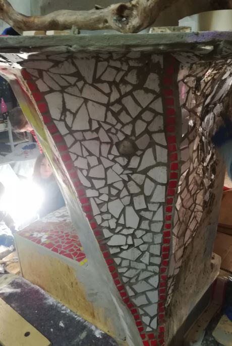 Frau Schneckenleitner Carina und Frau Schneckenleitner Josefine führen mit ihren Werk- und Zeichenklassen heuer ein wirklich tolles Kunstprojekt in Zusammenarbeit mit Yvonne und Hannes Hochrieser durch. Die beiden Künstler haben sich bereit erklärt, mit unseren Schülerinnen und Schülern ein Kunstwerk zu gestalten. In der "Bildwerkstatt" bearbeiten und gestalten die Kinder in den Werk- und BE-Stunden eine Säule und Möbelstücke mit einem Fliesenmosaik. Außderdem dürfen die Schülerinnen und Schüler alte Einrichtungsgegenstände - wie zum Beispiel alte Sessel - unter profesioneller Anleitung der beiden Künstler restaurieren. Nähere Informationen zur Eröffnung erhalten Sie natürlich rechtzeitig. |
