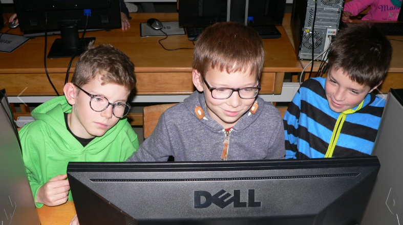 In der Englischstunde bei Herrn Ploderer und Herrn Sucharowski. Natürlich kam auch der Computer zum Einsatz. Frau Käfer verzauberte die Kinder in der Bücherei. |