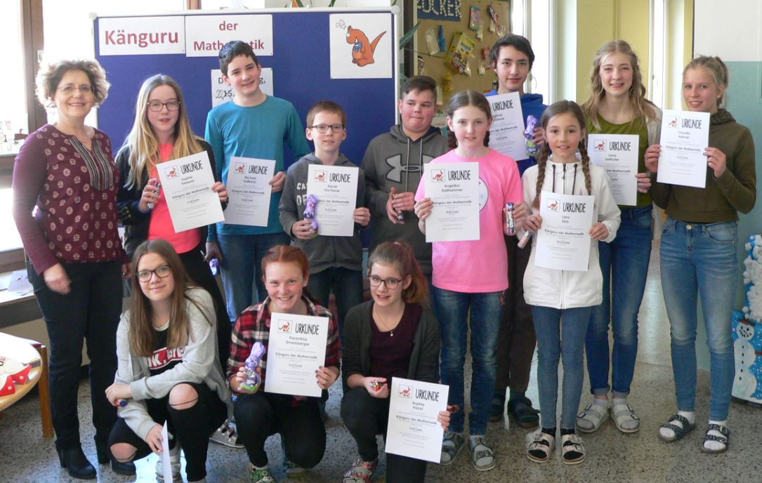 In diesem Schuljahr beteiligten sich alle Schülerinnen und Schüler am von Frau Käfer organisierten Wettbewerb "Känguru der Mathematik", bei dem es vor allem darum geht in einer vorgegebenen Zeit möglichst viele Knobel- und Denksportaufgaben richtig zu lösen.