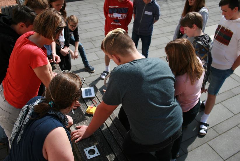 Am Freitag darauf gab die NAWI Gruppe ihr Wissen an die Kinder der 4. Volksschule weiter. Zuerst wurde Allgemeines zum Thema erneuerbare Energien besprochen und danach gab es in vier Gruppen vertiefende Informationen, welche die NMS-Schülerinnen und Schüler den Kindern aus der Volksschule in sehr anschaulicher und netter Weise präsentierten. |