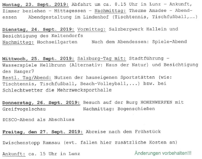 Organisatorin Frau Bachler hat ein sehr abwechslungsreiches Programm mit Sport und Kultur zusammengestellt: