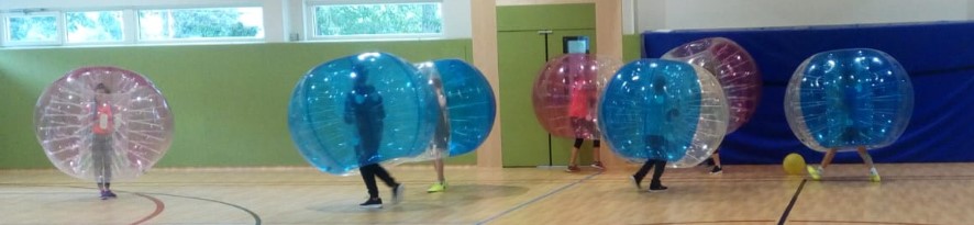 … und am Abend neue Bewegungserfahrungen beim "Bubble-Soccer" in der Turnhalle machen. |