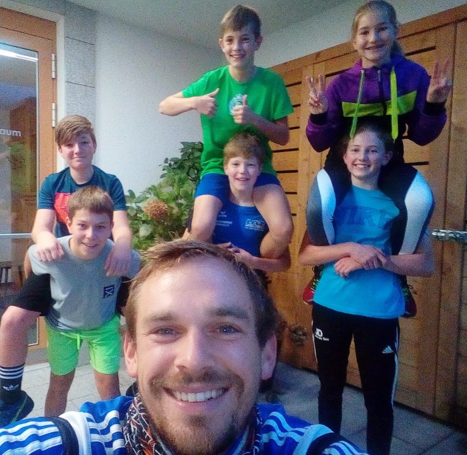 Sechs Schülerinnen und Schüler nahmen das Angebot des Morgensports mit Herrn Lindebner an. So kann der zweite Tag beginnen! |