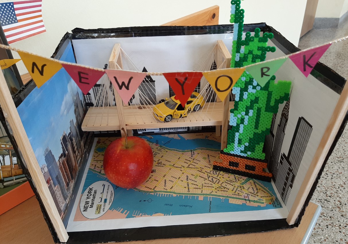 Im Geografieunterricht bei Frau Reiter erstellte die 2. Klasse "Städte in einer Schuhschachtel". Auf dem begrenzten Raum mussten die Schülerinnen und Schüler versuchen, die die jeweilige Stadt prägenden Sehenswürdigkeiten und Attraktionen unterzubringen. Im 1. Stock unserer Schule sind die sehenswerten Schachteln zu bewundern.