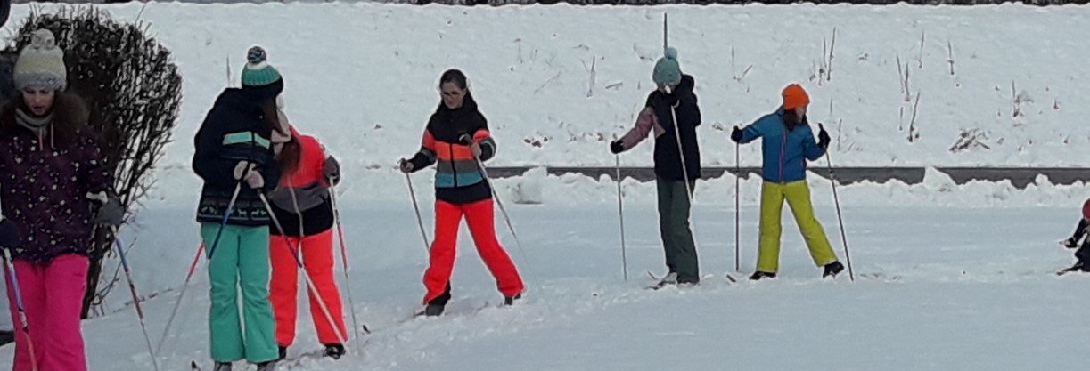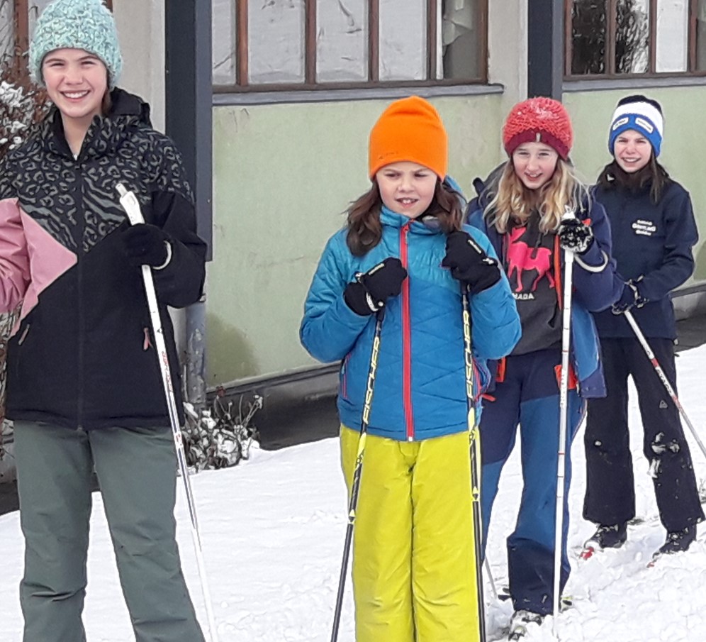 Endlich Schnee – wir packen die Langlaufschi aus!Am Montag, den 20.1. 2020 war es endlich soweit: es hatte die Tage vorher geschneit und dieser Umstand wurde von den Mädchen der 1. und 2. Klasse im Turnunterricht (mit Fr. Bachler) gleich zum Langlaufen auf unserer Schulwiese genutzt. Die Spur machten wir uns selbst, um sie anschließend für einen kleinen Wettbewerb zu nutzen. Es blieb aber auch genügend Zeit für Spiele mit einem Ski, Fangspiele und einer kleinen "Wanderung" mit lustiger Abfahrt! Wir hoffen, unser Können auch bald auf der