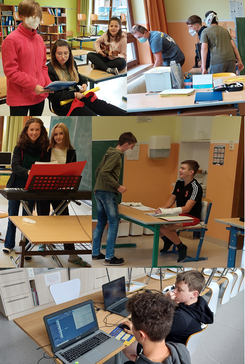 Im Musikunterricht der 4. Klasse arbeitet Frau Gamsjäger mit den Schüler/innen am Projekt "Wir gründen eine Band". Die Klasse arbeitet sehr frei an einem selbst gewählten Thema in verschiedenen Gruppen. So wird ein Stück selbst mit Instrumenten "komponiert", schauspielerisch dargestellt und von Maik und Niklas wird das Ganze mit einem Musikschnittprogramm zusammengestellt. Kreativität und Eigenständigkeit sind zwei ganz wichtige Faktoren für die Zukunft. Diese werden von unserer 4. Klasse mit großem Eifer umgesetzt. Ich bin schon sehr auf euer Endergebnis gespannt! |