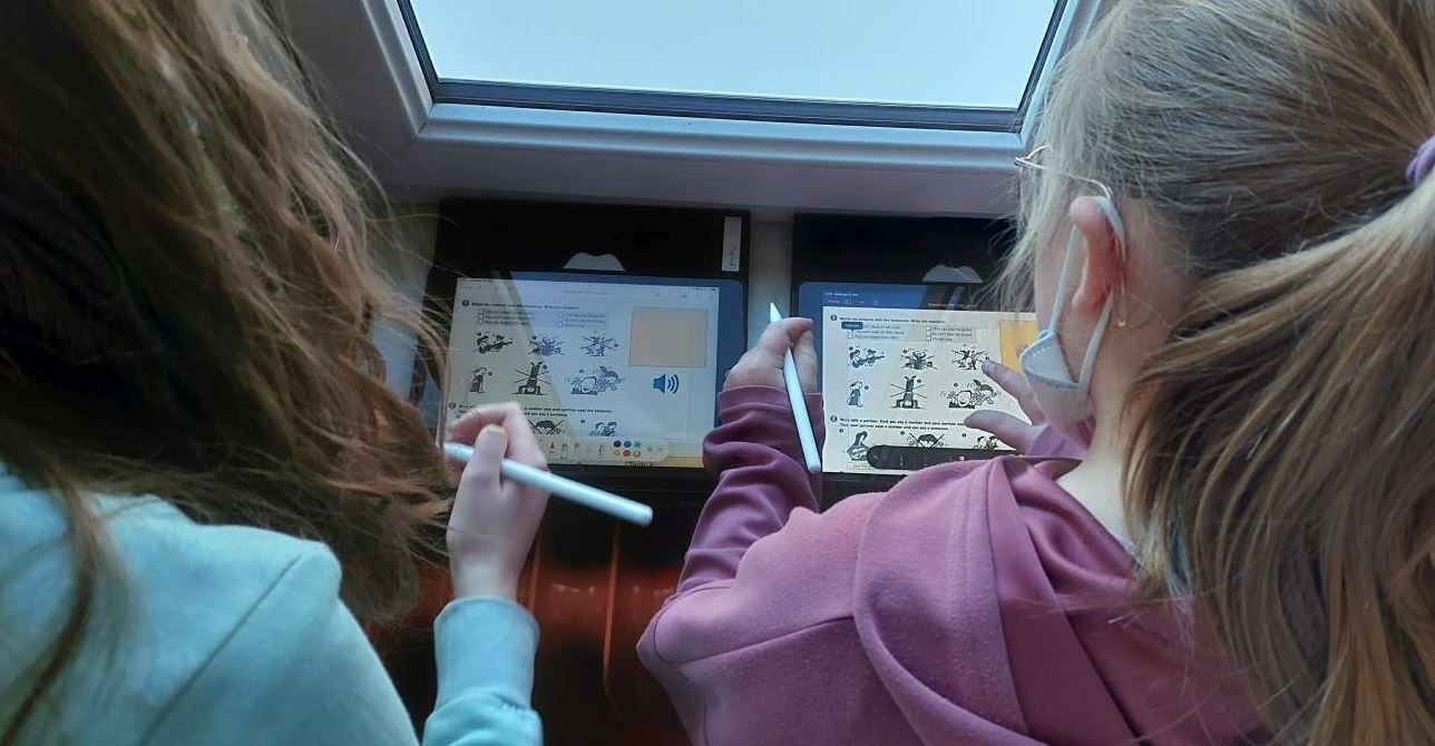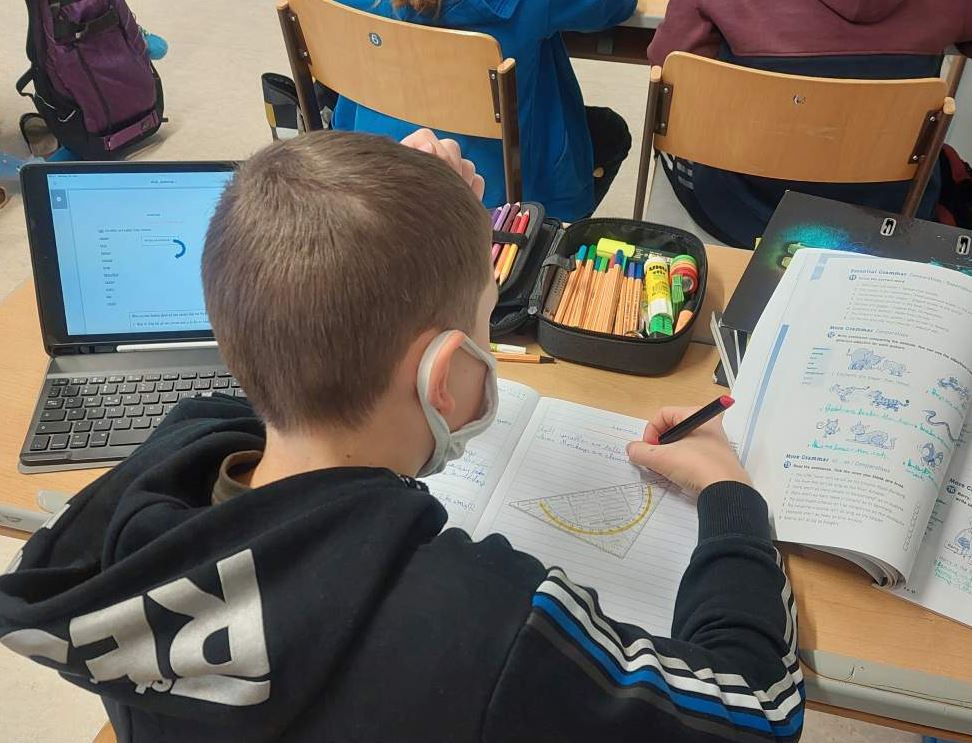Mit dem Eingabestift lassen sich digitale Arbeitsblätter (wie hier in Englisch in der 1b) perfekt bearbeiten. |