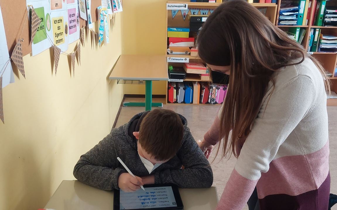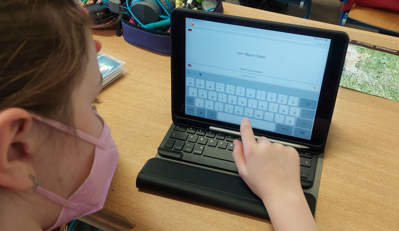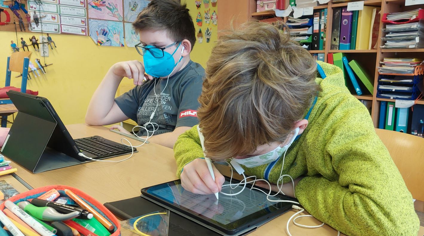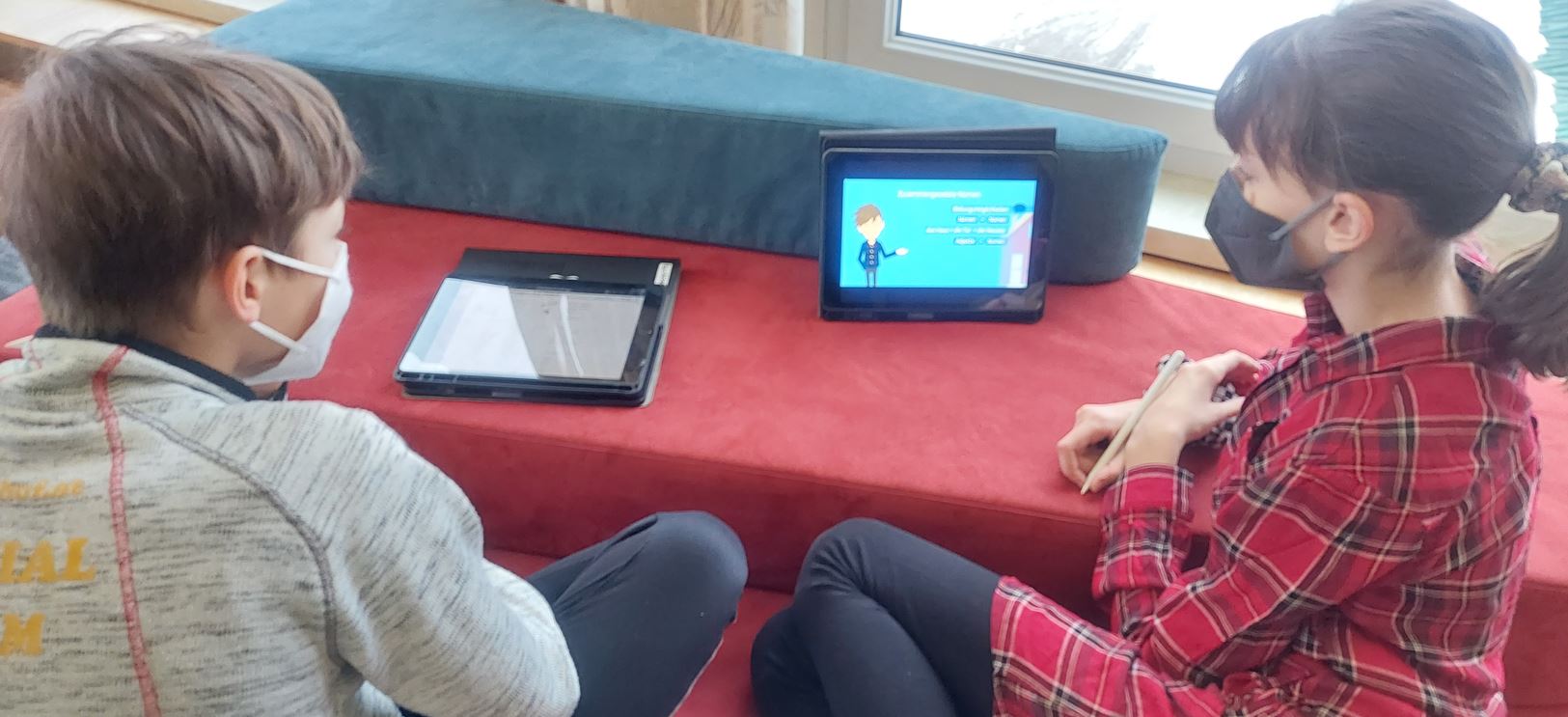Die Schüler/innen der 1a lernen im Deutschunterricht an Hand eines Lernvideos die Regeln für die Mehrzahlbildung und wenden das Gelernte sogleich auf einem digitalen Arbeitsblatt an.