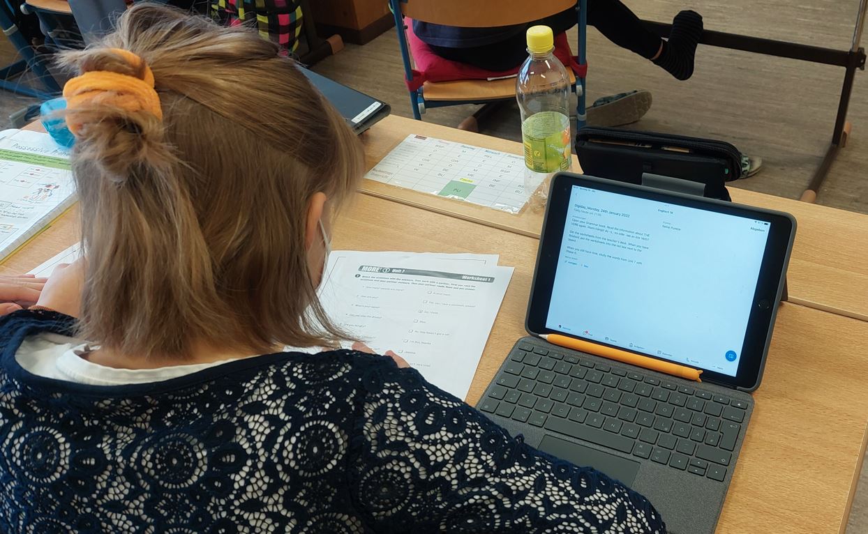 Im Englischunterricht erhielten die Kinder ihre Arbeitsaufträge ebenfalls über MS-Teams. Sie mussten Arbeitsblätter "analog" ausfüllen, diese danach scannen, als PDF-Dokument abspeichern und hochladen.