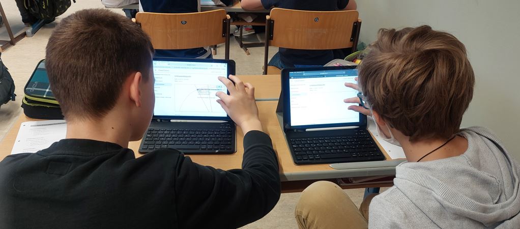 Mit Hilfe der Funktion "Bildschirmsynchronisierung" wurden die Inhalte verschiedener Schüler-iPADs auf dem Beamer dargestellt und die Kinder konnten dazu ihre Erklärungen abgeben.