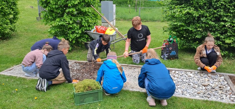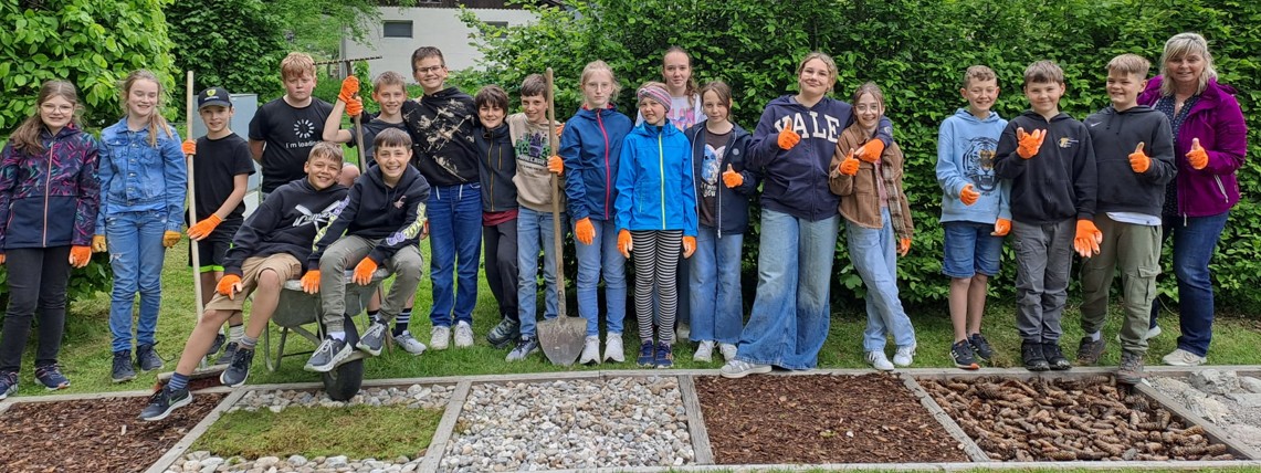 Einmal im Jahr sorgen wir mit einer unserer Klassen für die Instandhaltung des Barfußweges beim Gemeindespielplatz. Dieses Mal war unsere 1. Klasse mit ihren Technik und Design-Lehrerinnen Frau Reichhuber und Frau Schnaubelt dafür verantwortlich. Eifrig wurden die Felder gesäubert und neu befüllt und auch rund um den Parcours wurde richtig schön sauber gemacht. |