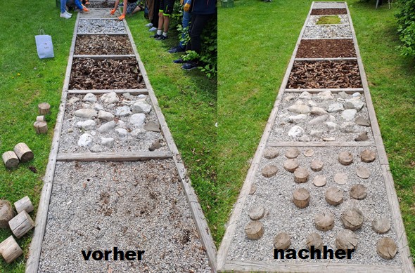 Das Ergebnis kann sich wieder sehen lassen (Foto links), der Barfußparcours freut sich auf viele Besucherinnen und Besucher!