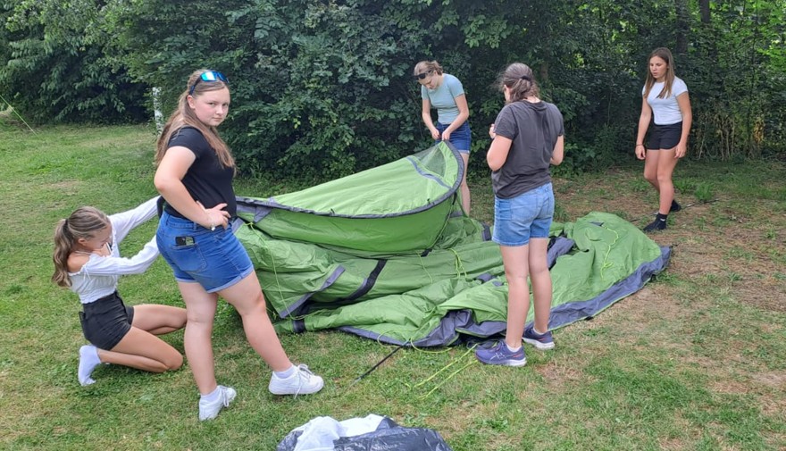 Nach dem Aufbauen der Zelte wurde eifrig Fußball- und Volleyball gespielt.