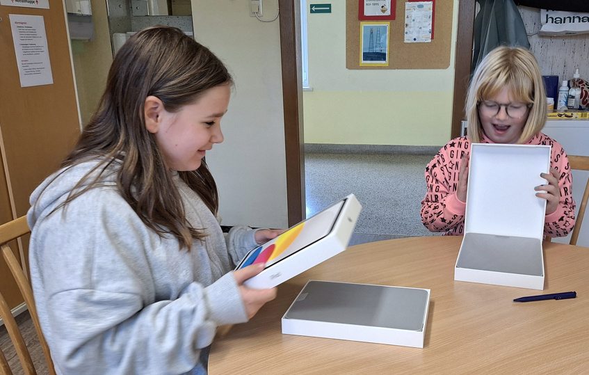 Groß war die Vorfreude der Kinder der 1. Klasse, als sie hörten, dass ihre iPADs geliefert worden waren.