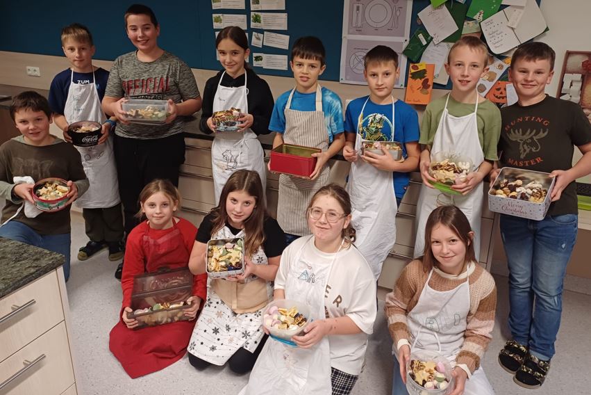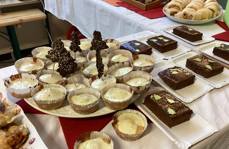Heute an diesem Nachmittag waren wir für das Buffet für den Elternsprechtag zuständig. Wir machten Lebkuchen, Thunfischwraps, Pizzaschnecken, Weihnachts-Tiramisu, Biscuit-Roulade, Joghurt-Muffins sowie Eier- und Kürbiskernaufstrichbrote. - Bericht von Elias und Manuel P. - |