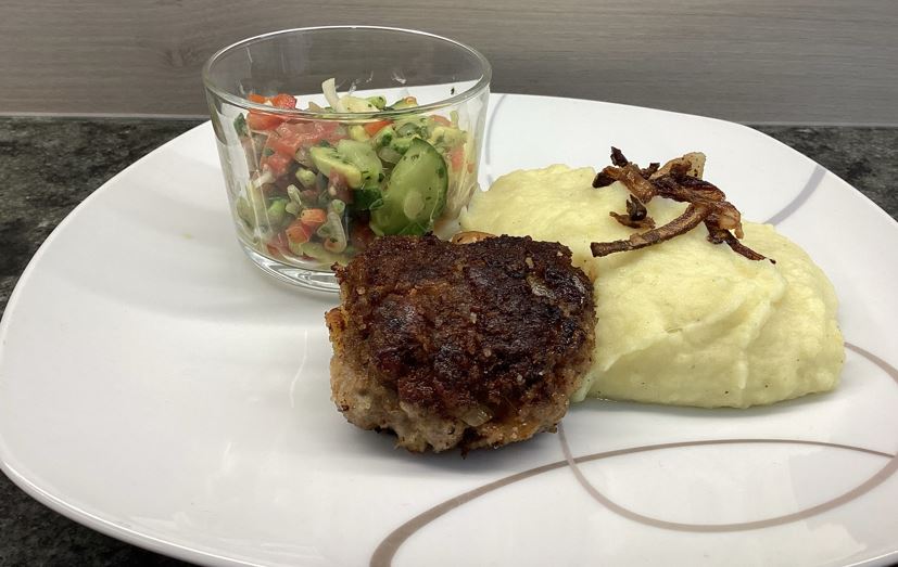8. Kochtag, 3. Klasse, 6.3.2025 Heute haben wir als Vorspeise eine Käsecremesuppe gemacht. Als Hauptspeise gab es marinierte Puten-Gemüse-Spieße mit Potato Wedges und Schopska Salat und als Nachspeise haben wir gebackene Apfelringe gemacht. - Bericht von Michael St. - |