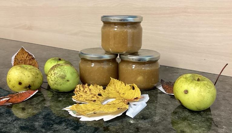 Oktober 2024 Unser heutiges Thema im EH Unterricht war Lebensmittel haltbar zu machen. Aus 8kg gespendeten Äpfeln haben wir Bratapfel-Marmelade gemacht. Diese werden wir in Kunst und Gestaltung noch verzieren und mit einem Etikett versehen. So entstehen wunderschöne Weihnachtsgeschenke. Damit wir auch satt werden, haben wir ein Erdäpfelgulasch gekocht und verspeist. Frau Heigl hat einen selbst gemachten Germteig mitgenommen und daraus haben wir einen leckeren Allerheiligenstriezel gebacken und dazu die selbst gemachte Marmelade verkostet. - Bericht von Leon - |
