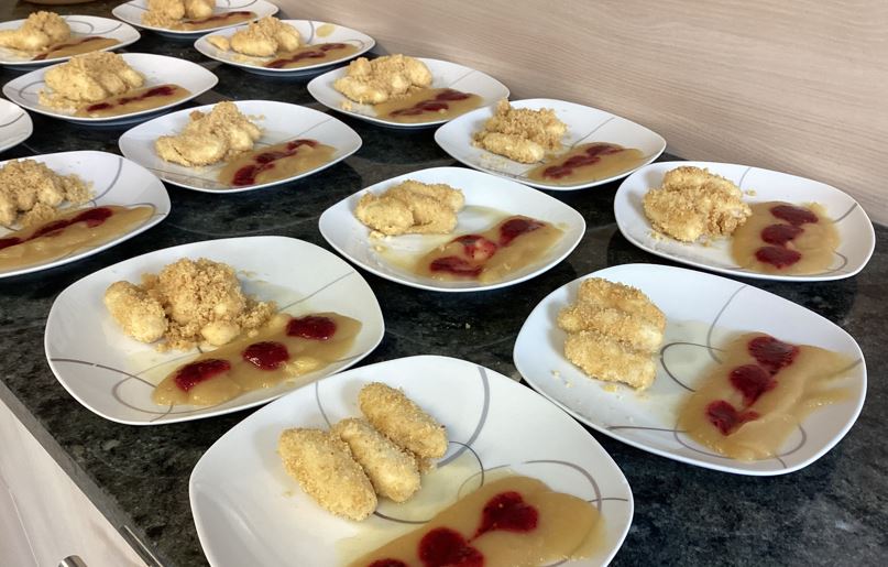 Beim letzten Kochtag haben wir das Buffet für den BO-Abend hergerichtet. Heute, an unserem 4. Kochtag haben wir das Fingerfood-Buffet für uns selbst gekocht. Das Essen war sehr lecker. Wir durften heute außerdem unsere selbst gemachten Apfel-Zimt Marmeladen mit nach Hause nehmen. |
